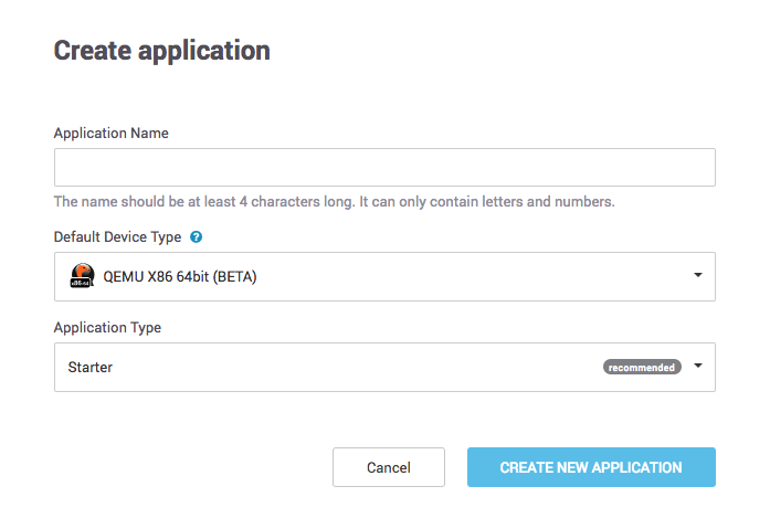 Balena create application window