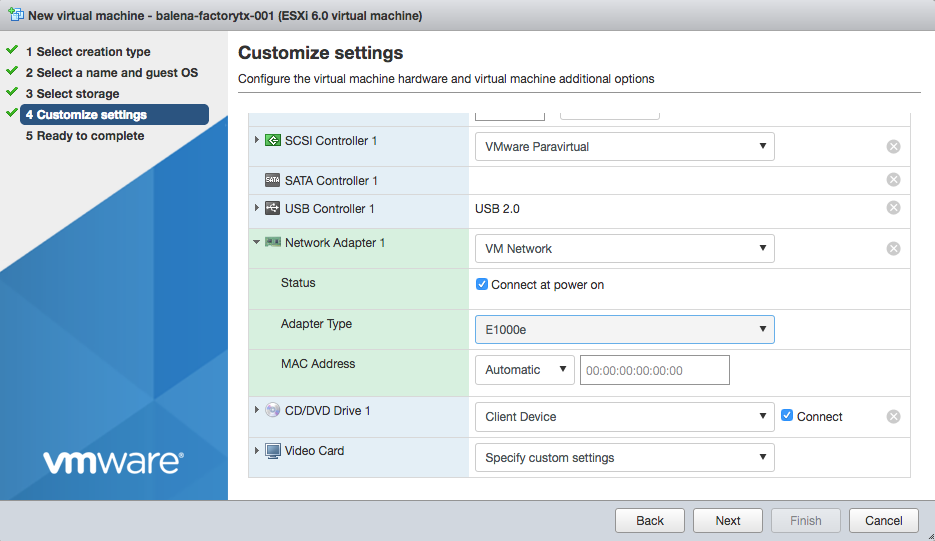 For the Network Adapter, select E1000e or E1000 as the Adapter Type.